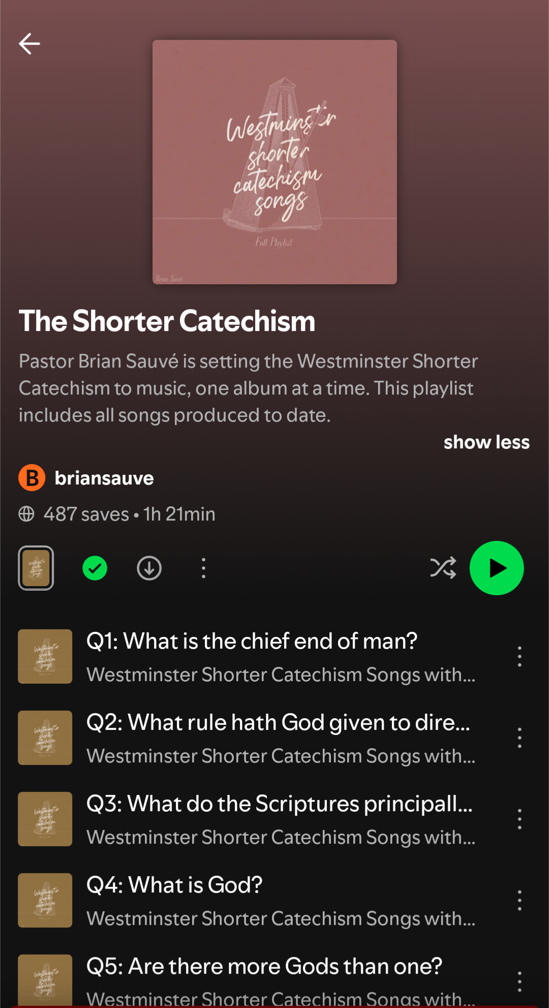 While Reformed Companion is an amazing help, I struggle to memorize anything without the aid of a rhyme or tune. But I’ve nailed down the first seven questions within a week just by listening to the Westminster Shorter Catechism songs by Brian Sauvé! I also love Brian’s Psalm settings—check those out here.